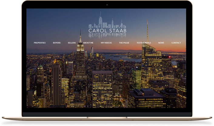 The Manhattan skyline stars in Carol Staab's real estate website, appearing on her crafty brand logo and providing a gorgeous backdrop for her welcome page. The site makes great use of modern media, especially streaming video playlists, to present her expert knowledge of Manhattan's neighborhoods, top listings, and market reports. The site also notably uses small type, a subtle but effective touch that lends a unique elegance.